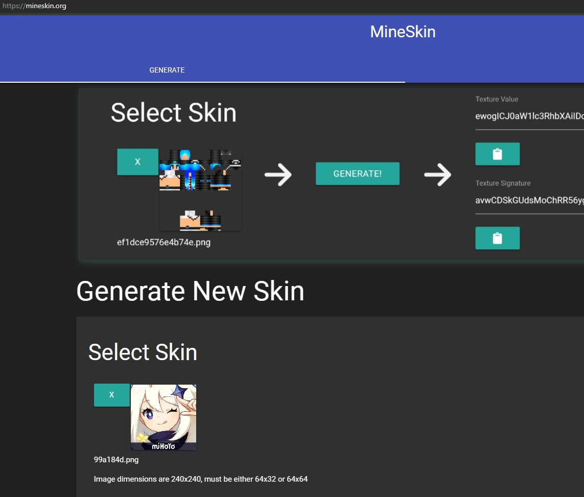 自己上传的话在https://mineskin.org/上传完就可以得到url